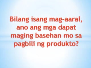 Pagkonsumo Lance Gerard G. Karapatan ng mga mamimili ApHUB2013. MGA SALIK NA NAKAKAAPEKTO SA PAGKONSUMO 8 Pamprosesong Tanong 1 Anu ano ang mga from A EN ENGLISH LI at Luis Y.