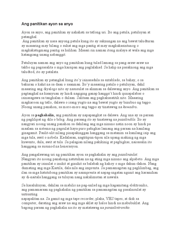 Ang Panitikan Ayon Sa Anyo Pdf