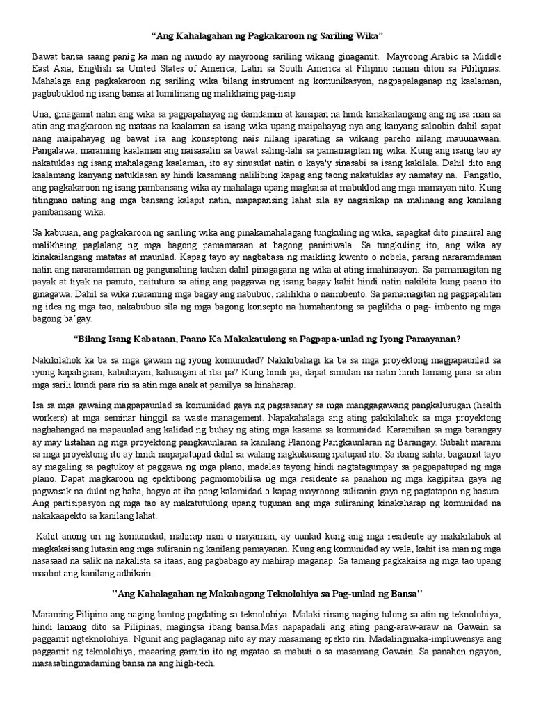 Ang Kahalagahan Ng Pagkakaroon Ng Sariling Wika Pdf