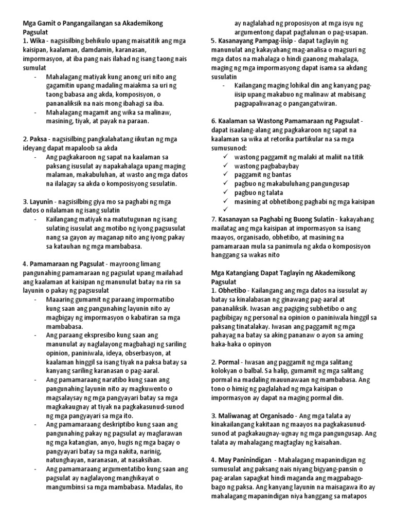 Mga Gamit O Pangangailangan Sa Akademikong Pagsulat Pdf
