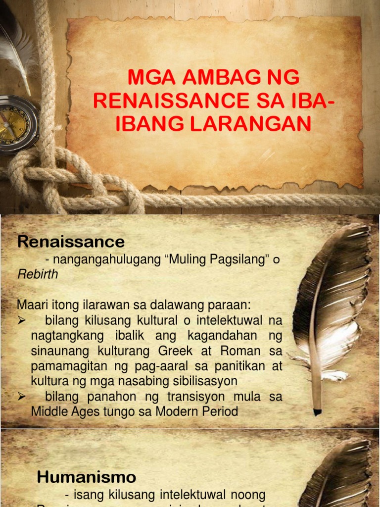Ang salitang renaissance ay isang salitang French na literal na nangangahulugang pagkabuhay muli. Ang sarili nilang kaligtasan ang kaligtasan ng kanilang mga pamilya pero. 21112014 Mga Ambag ng Renaissance sa ibat ibang larangan.