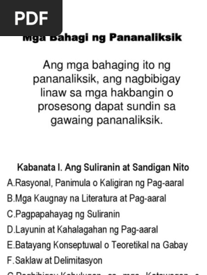 Kabanata I Mga Bahagi Ng Pananaliksik Pdf